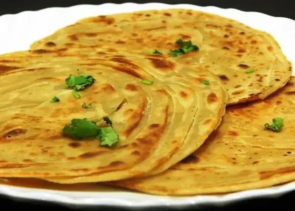 Multi-layered, flaky flatbread cooked with ghee—Lachha Paratha is a crispy delight.