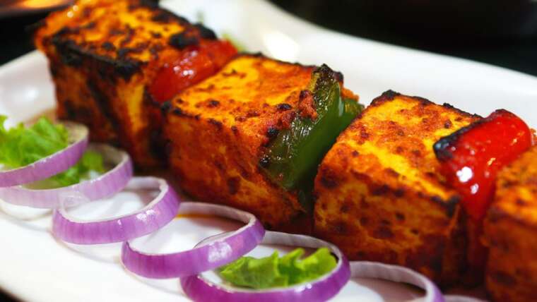 Juicy, spiced paneer cubes grilled to perfection—Paneer Tikka is a delicious vegetarian treat.