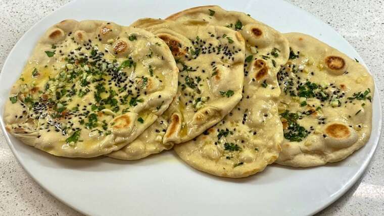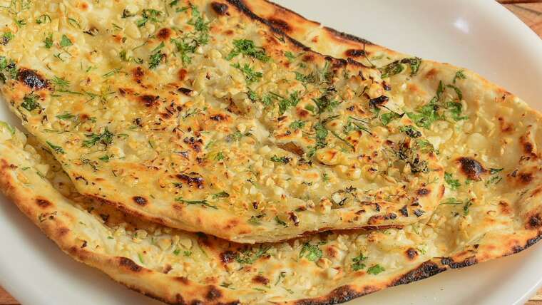 Soft tandoor-baked naan infused with fresh garlic and butter—Garlic Naan is full of flavor.